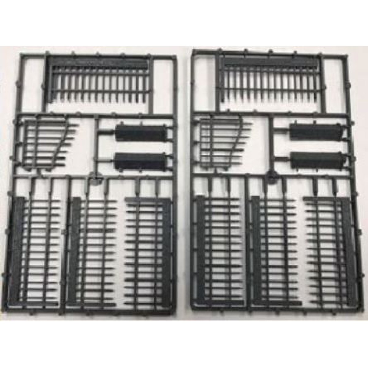 The pack contains 2 frames, each frame consists of 4 lengths of railings, 1 gate pillar and 1 gate - ideal for graveyard surrounds. The 2 frame pack will make 81cms of railings (including the gate)